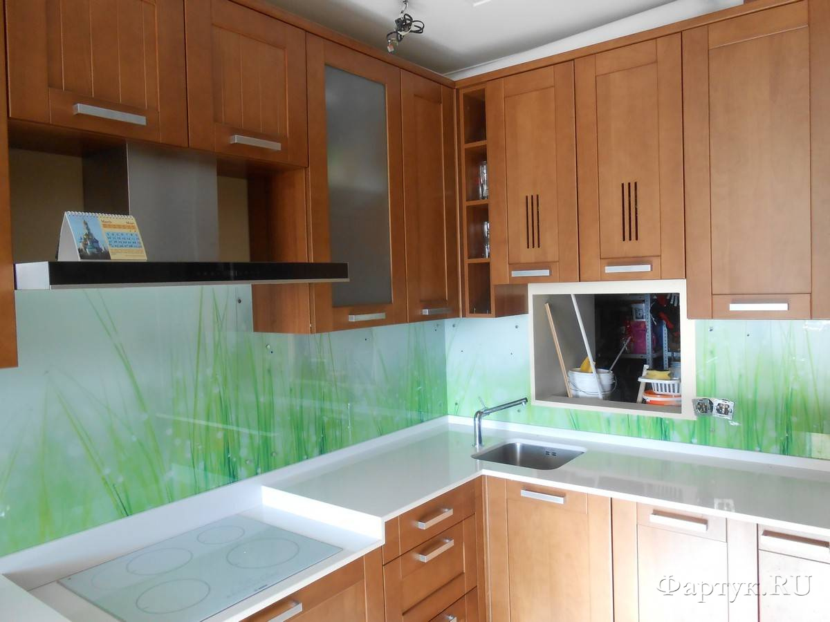 Такой фартук как нельзя лучше подходит к мебели, он с одной стороны поддерживает стиль гарнитура, а с другой делает интерьер менее строгим.